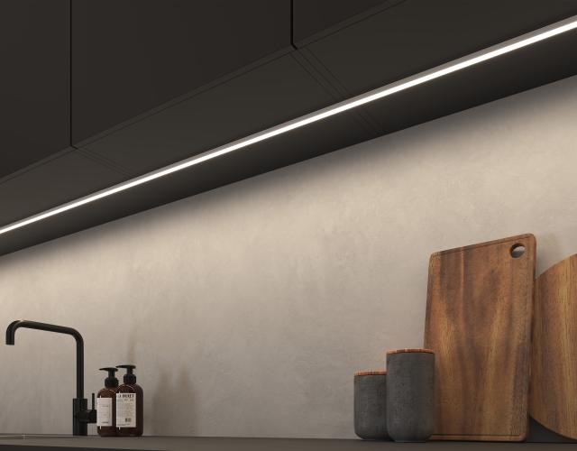 Alla Loevschalls spotlights och linjära belysningsprodukter kan justeras i ljusstyrka via fjärrkontrollen Kinetic Switch eller app-styrning. Det krävs bara en styrenhet, som placeras tillsammans med drivdonet.