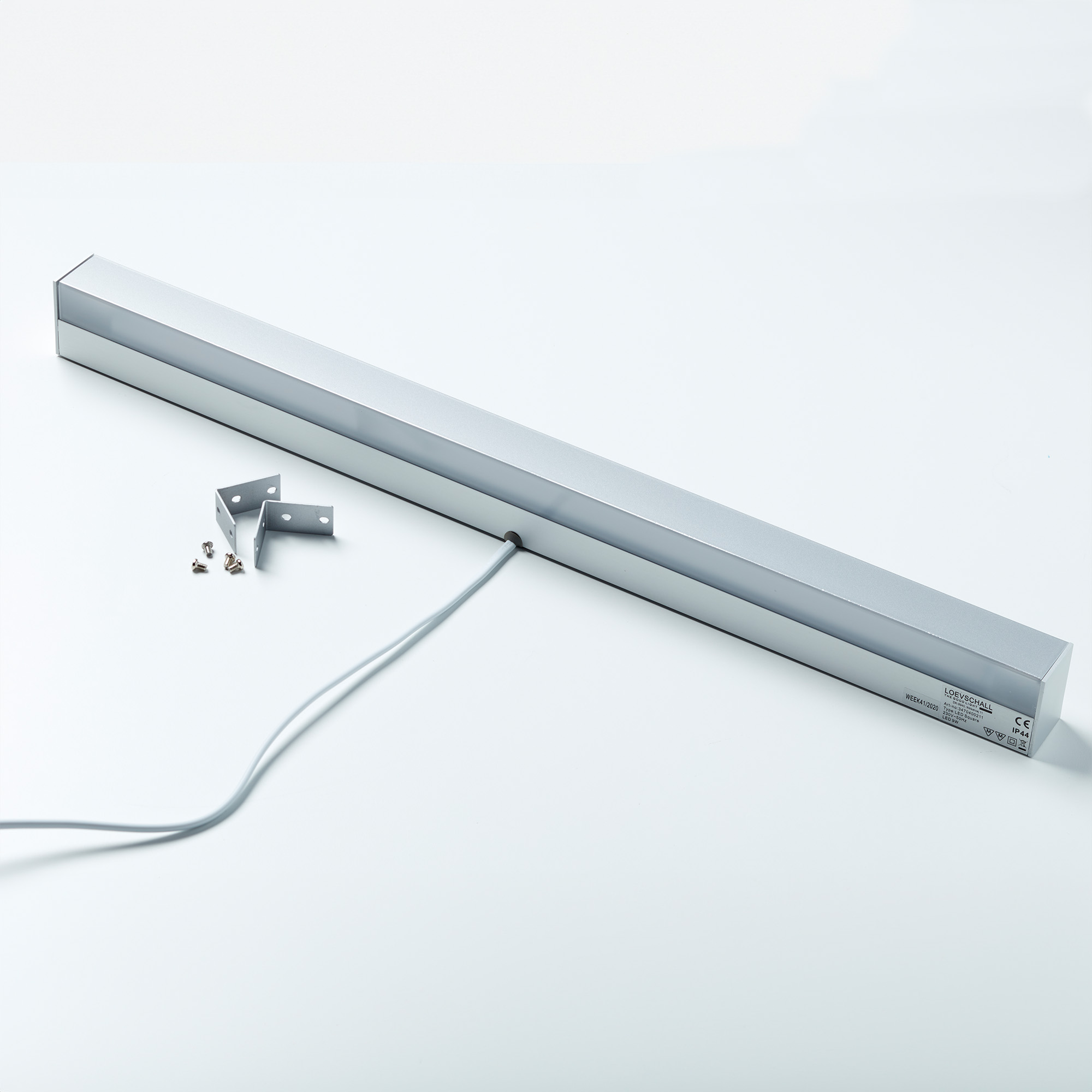 Armaturen monteras på två olika sätt: direkt på väggen eller med fästen ovanpå ett skåp. Beslagen ser till att armaturen hamnar rätt, det vill säga 30 mm ut och upp, så att ljuset kan skickas både framför och uppåt, fritt från möbeln.