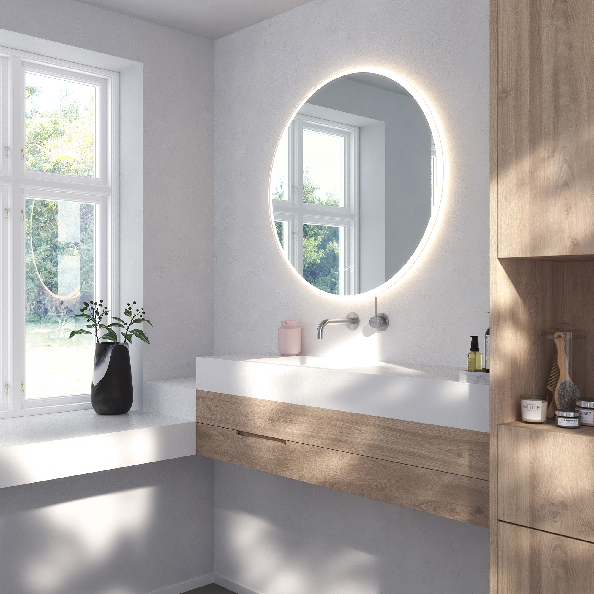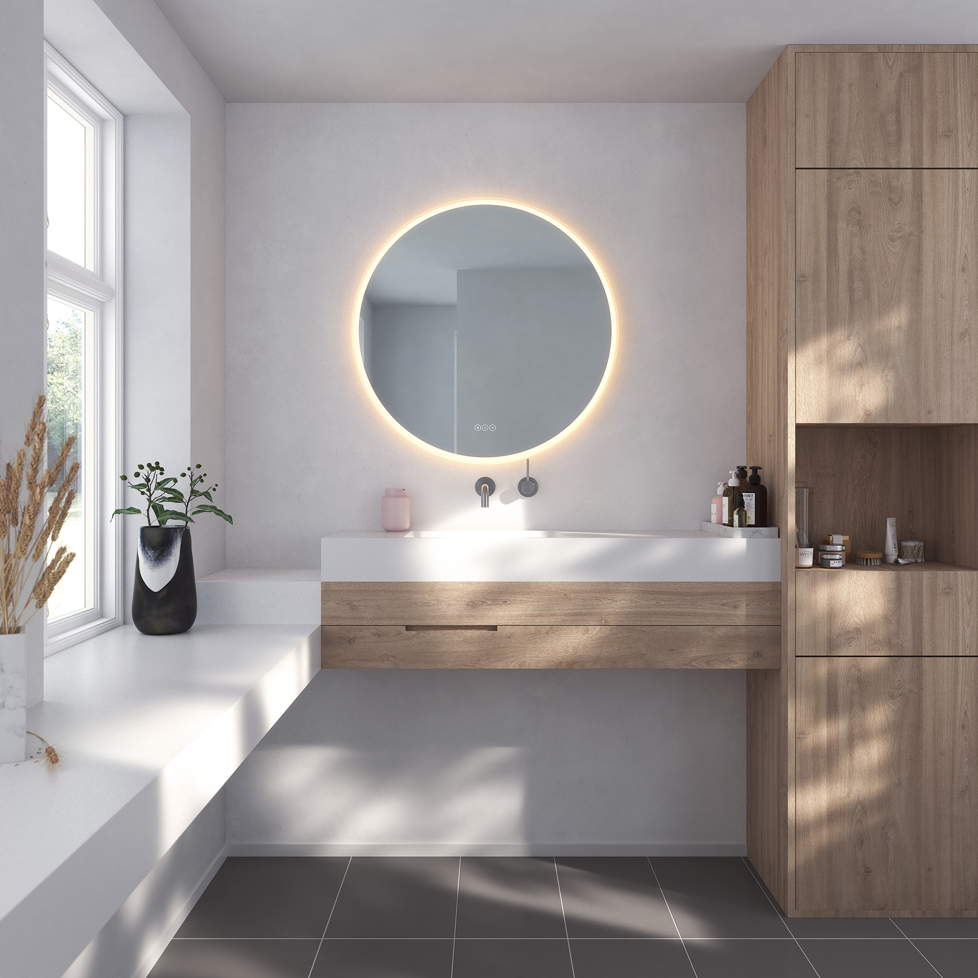 - Rund spegel med ljus, MultiWhite® som går från varmt till kallt ljus